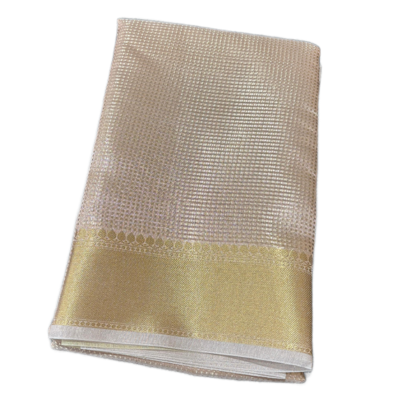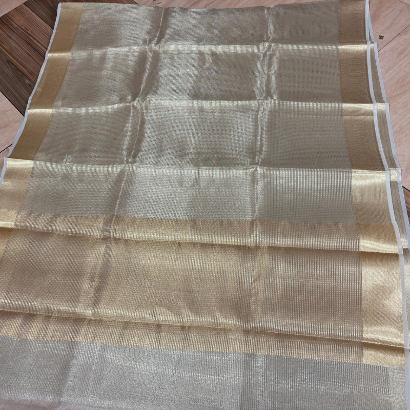 Inspired by the iconic Nayanthara Ambani wedding saree in a golden shade, this stunning creation is made from georgette tissue fabric, exuding elegance and sophistication. Perfect for special occasions, the saree offers a graceful drape and a premium finish. The length is 6.25 meters.